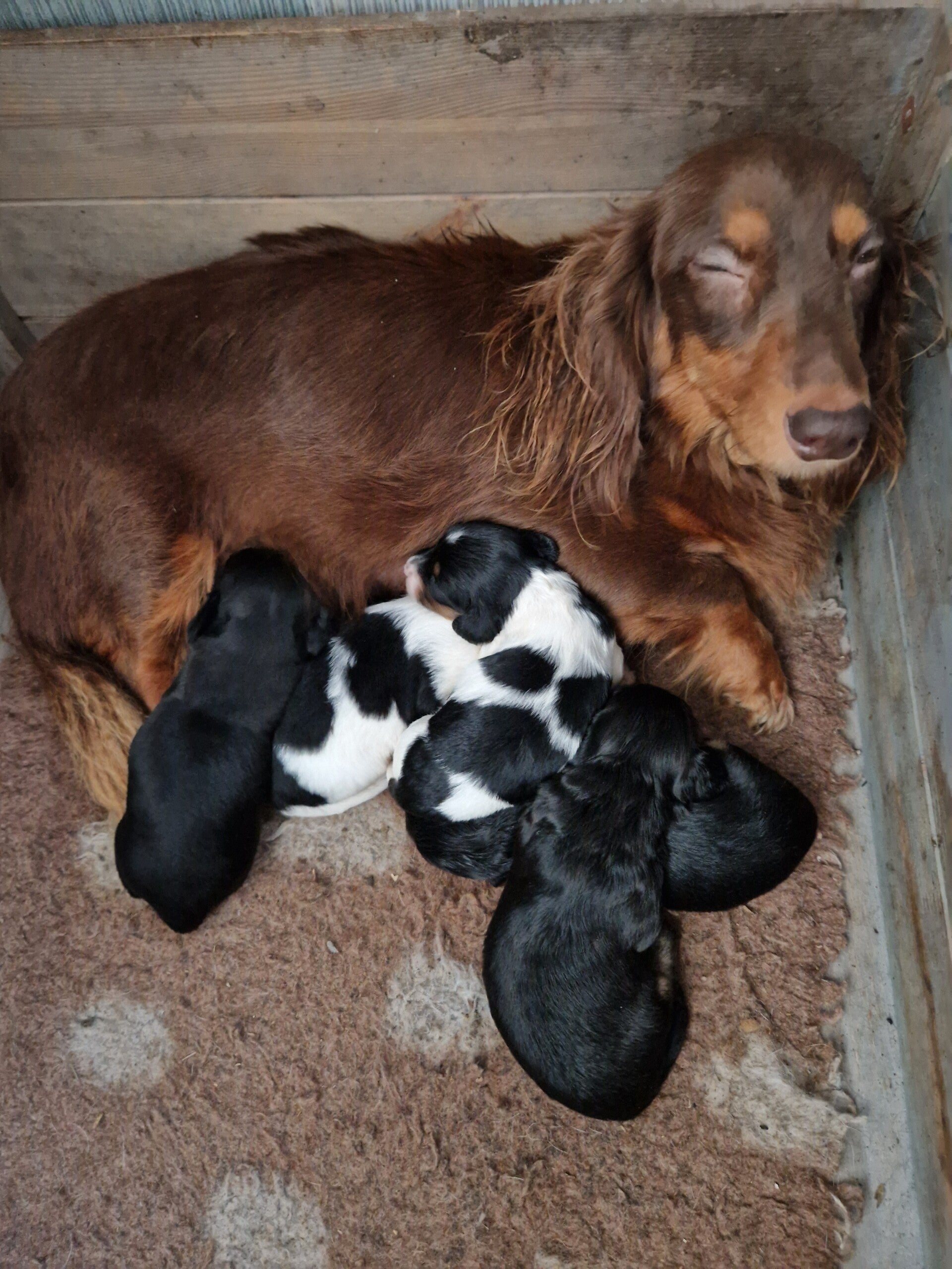 Op 20 december 2025 zijn er 5 langhaar dwerg teckel pups geboren. 4 reutjes en 1 teefje.
